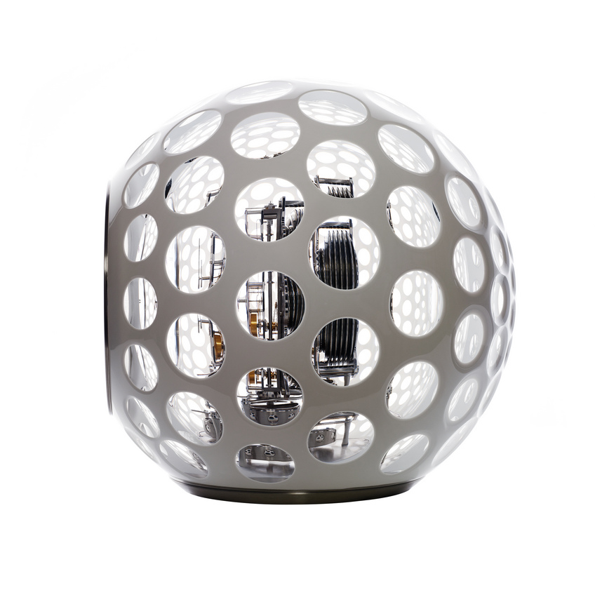 Pursuing this demanding hand-crafted approach, Hermès entrusted Les Cristalleries de Saint-Louis glassmakers with creating the astonishing exterior of this clock: a crystal globe made using the so-called doublé or double overlay technique, which consists in coating layers of glass over each other, including a coloured one. Within the company, only six master glassmakers have the mastery and experience required to perform this task.